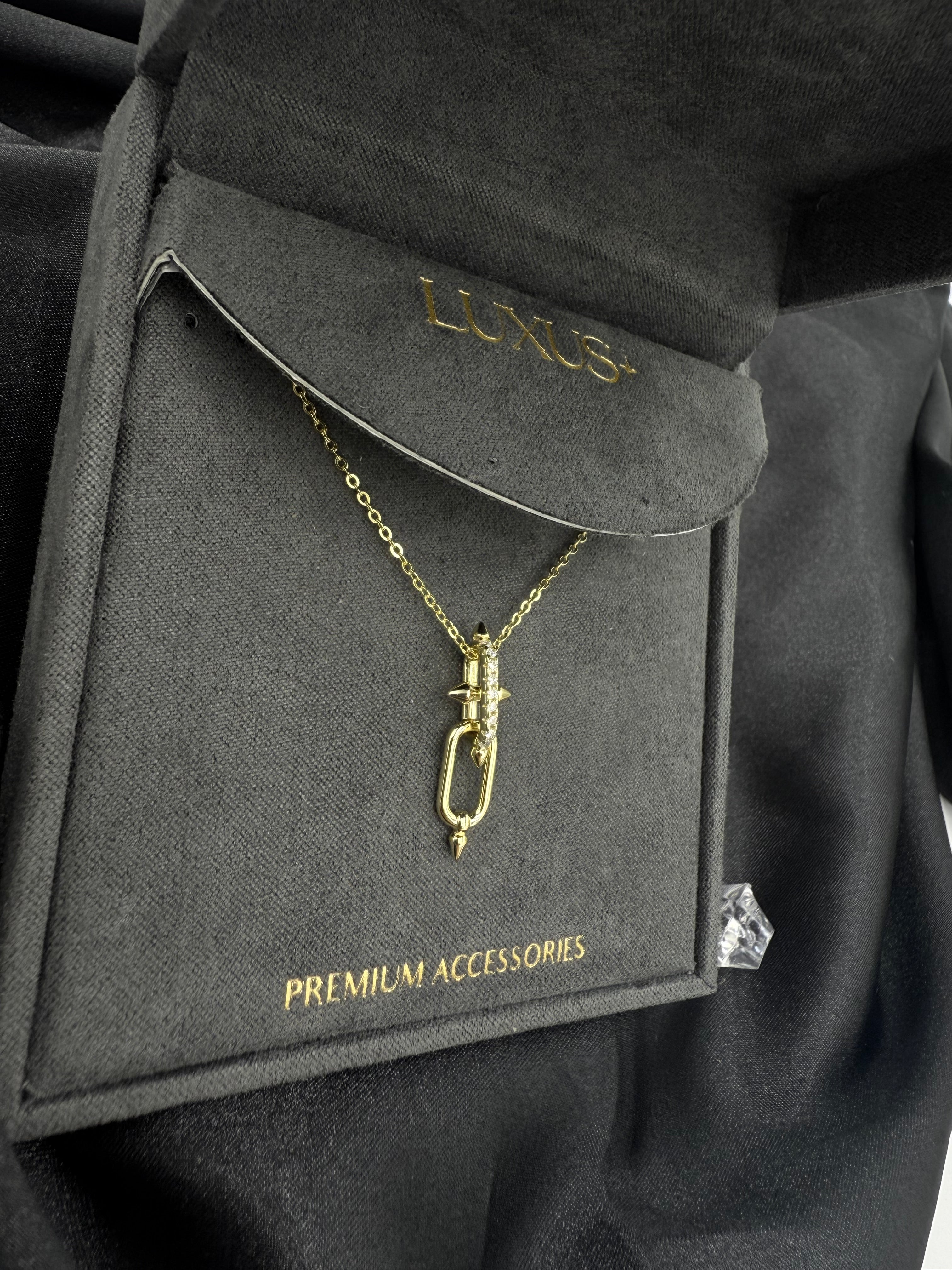 El Lux Arrow Necklace representa fuerza, propósito y elegancia. Elaborado en plata 925 con brillantes zirconias cúbicas, su diseño moderno en forma de flecha simboliza que toda mujer en su poder avanza con gracia y confianza.